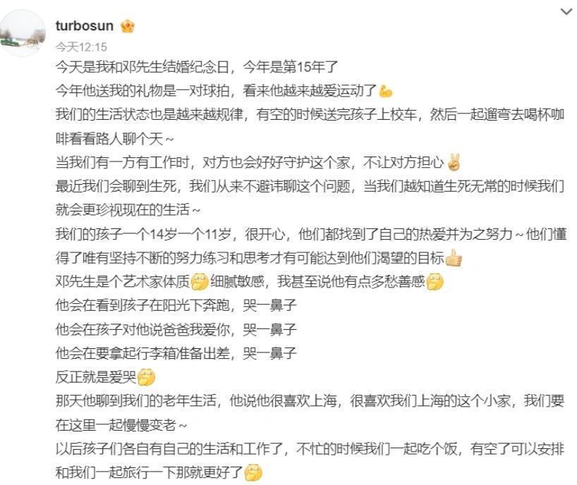 直到6月7日,他们结婚15周年纪念日那天,孙俪发了一篇长文。她在文章里细细描述了他们在上海的生活,她说:“他们喜欢上海,要在这里慢慢变老”。这句话看似平常,实际上是对那些移民传闻最有力的回应。就这样,移民英国的谣言也不攻自破了!