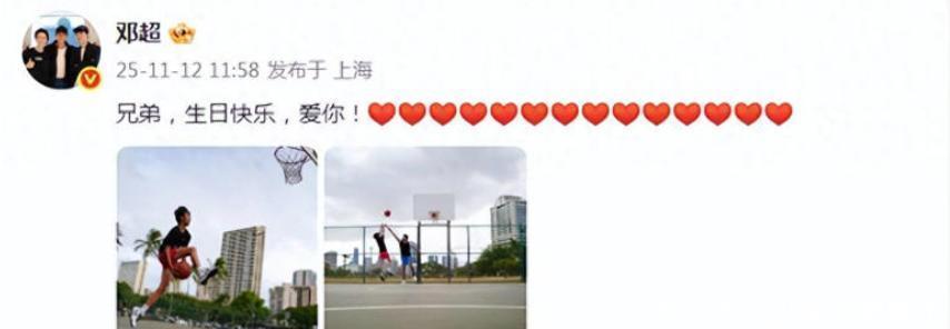 温馨庆生在11月13日,是他们的儿子等等十四岁生日,邓超在社交媒体上发了一张照片。照片里,他和儿子在篮球场上,两个人同时跳起来争球,他配的文字很简单:“兄弟,生日快乐,爱你。”没有华丽的辞藻,没有刻意的表白,但父子之间的感情,全都藏在这句话里了。